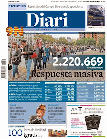Guardé estás portadas del lunes 10, posteriores al referéndum catalán del domingo (o como se llame). Sorprenden el tono de los diarios de Madrid y la endogamia de los catalanes.